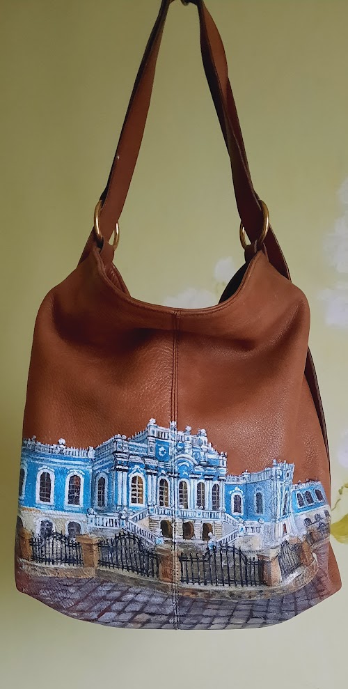 Шкіряна сумка, олійни фарби